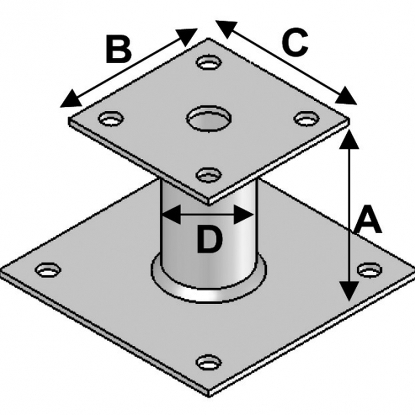 Pied de poteau fixe sans réglage avec une platine à fixer dans le béton.