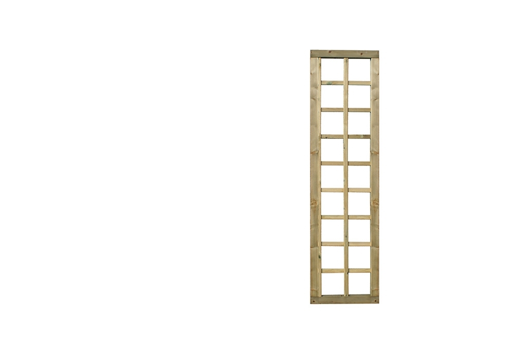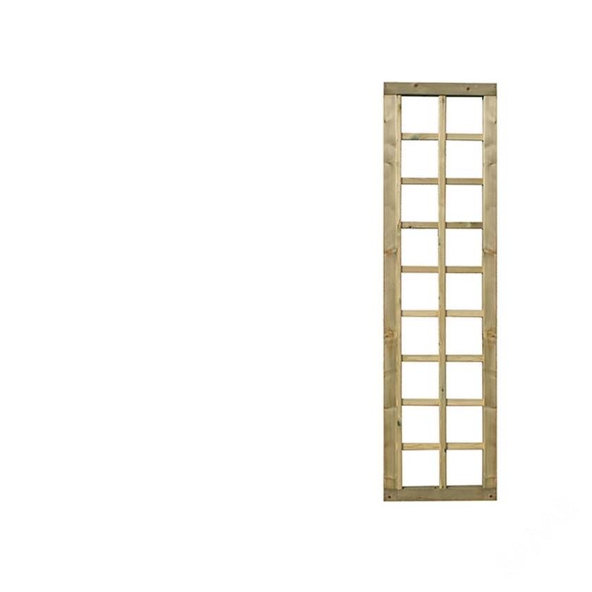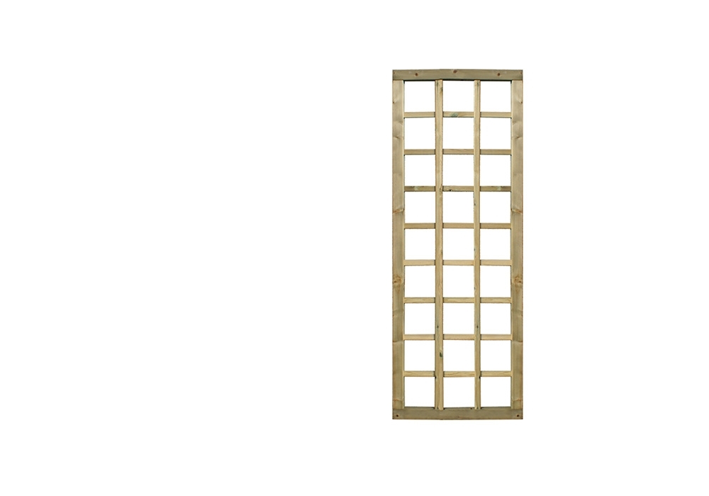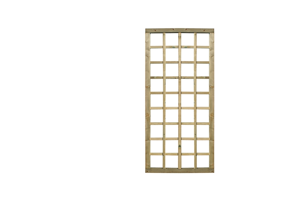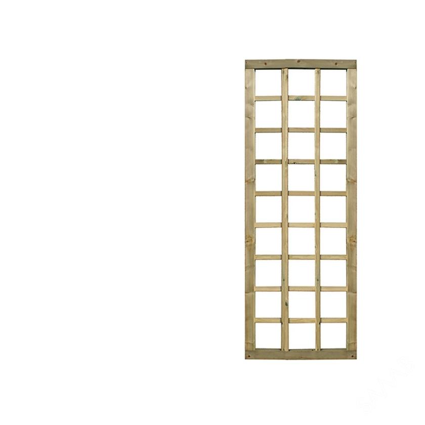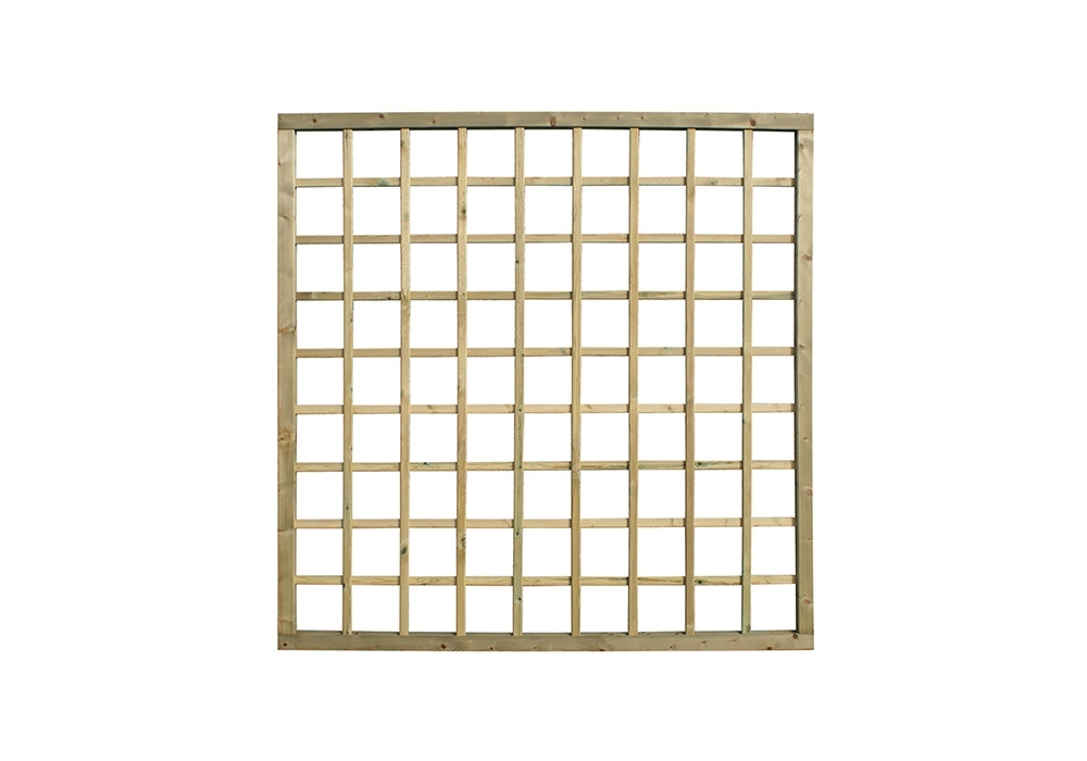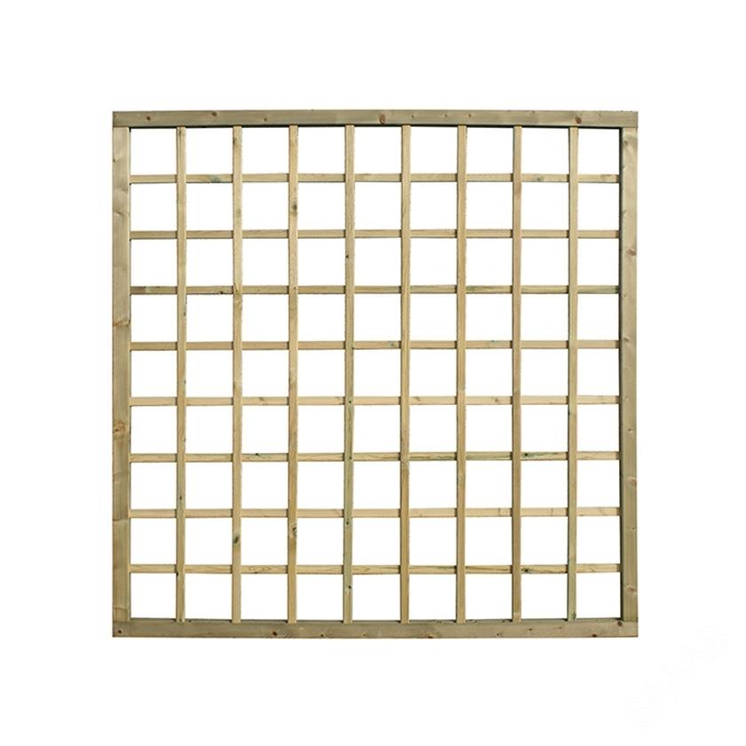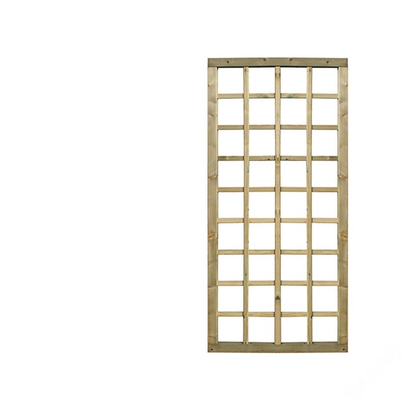 Treillage maille carré. Le cadre raboté a un assemblage à tenon et mortaise de 35 x 55 mm en bois nordique traité. Les lattes de 10 x 30 mm forment des ouvertures carrées de ± 150 x 150 mm, idéales pour faire pousser des plantes grimpantes.